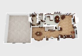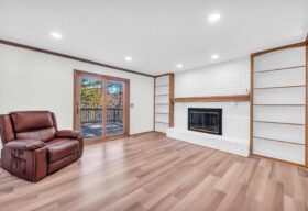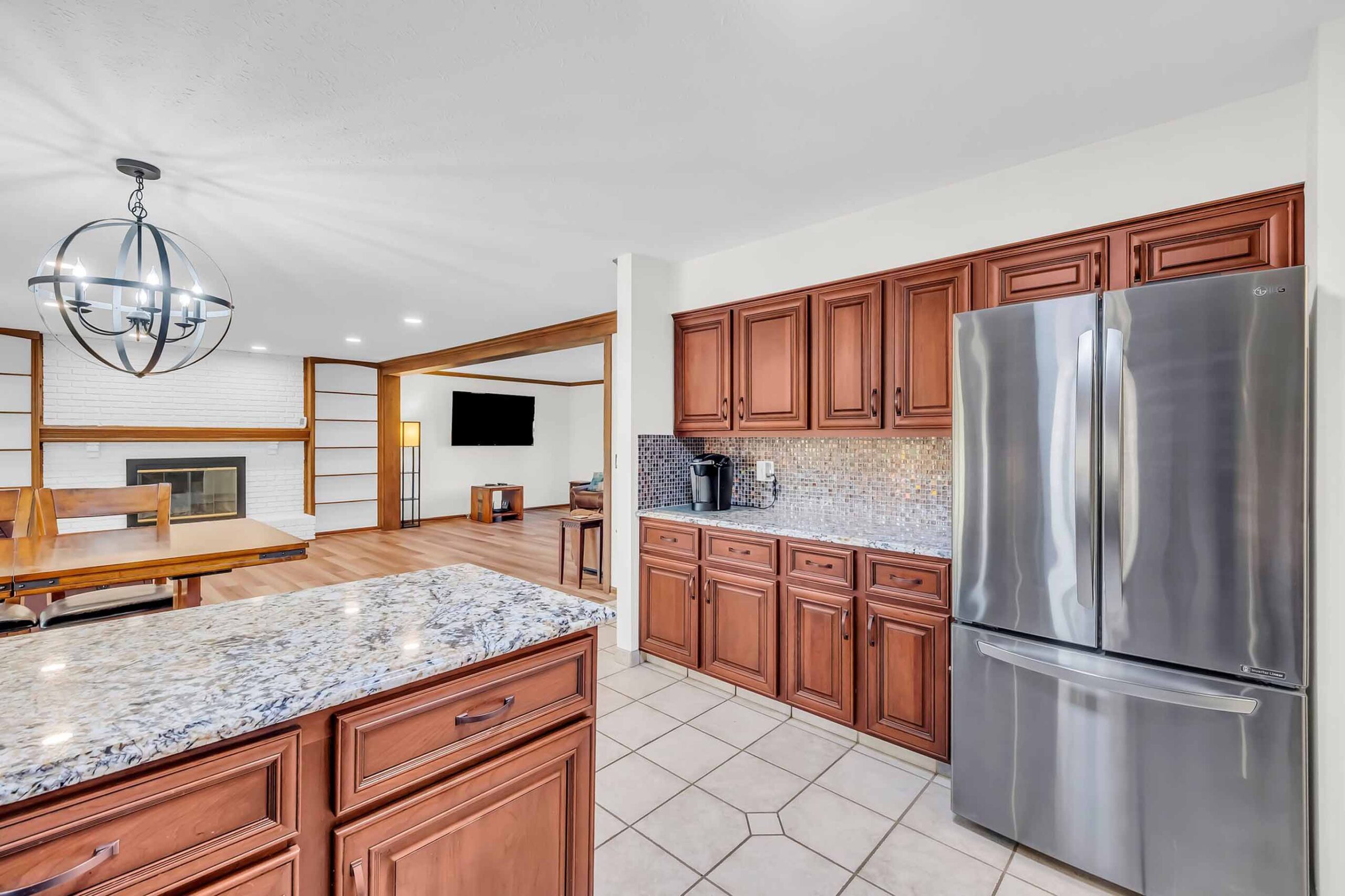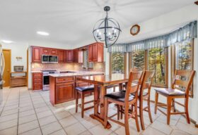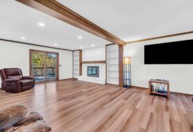 - The main level presents a large, open-concept great room with wonderful natural light, wood-burning fireplace, and space for all your gathering needs.