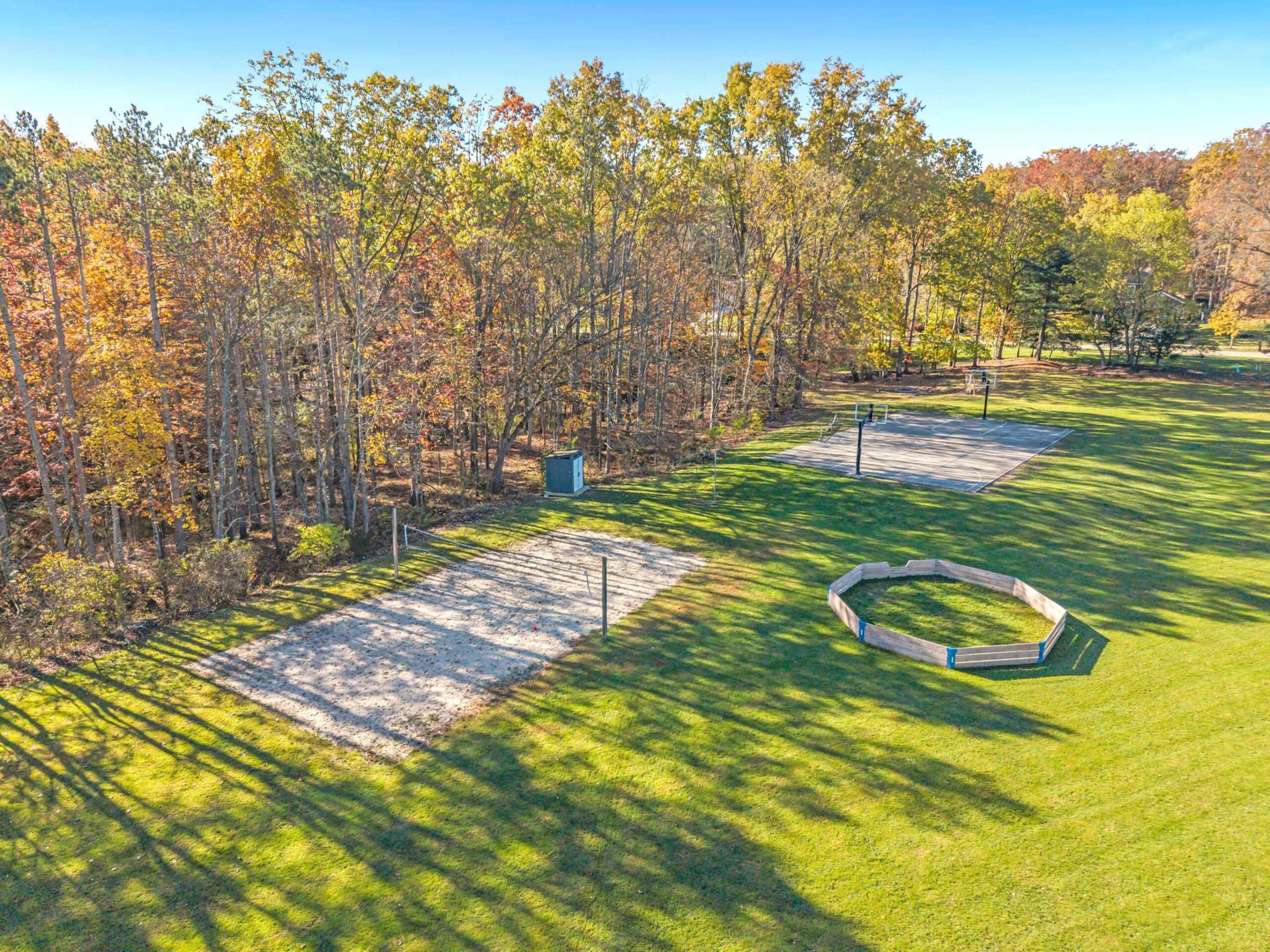 - Echo Hills community amenities include baseball diamond, sand volleyball court, soccer field/nets, basketball/pickleball court, disc golf, fishing lake, swimming lake w/a sand beach (via South Court), plus year-round community events.