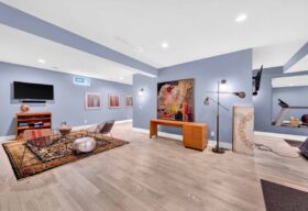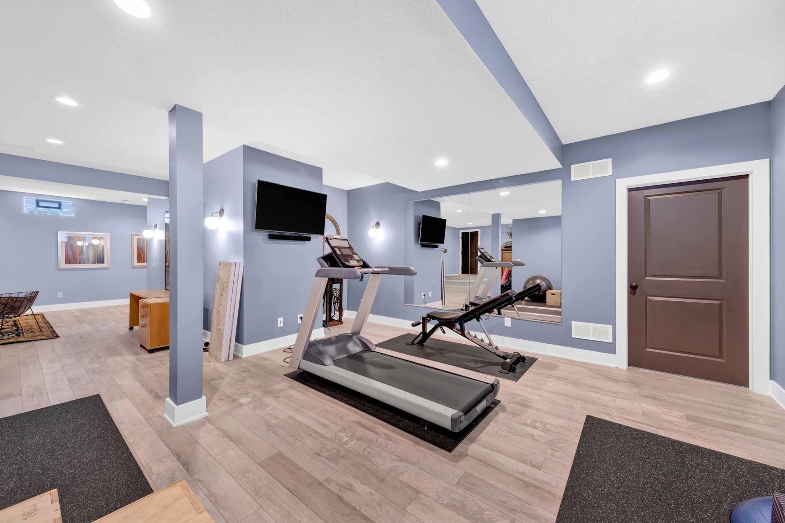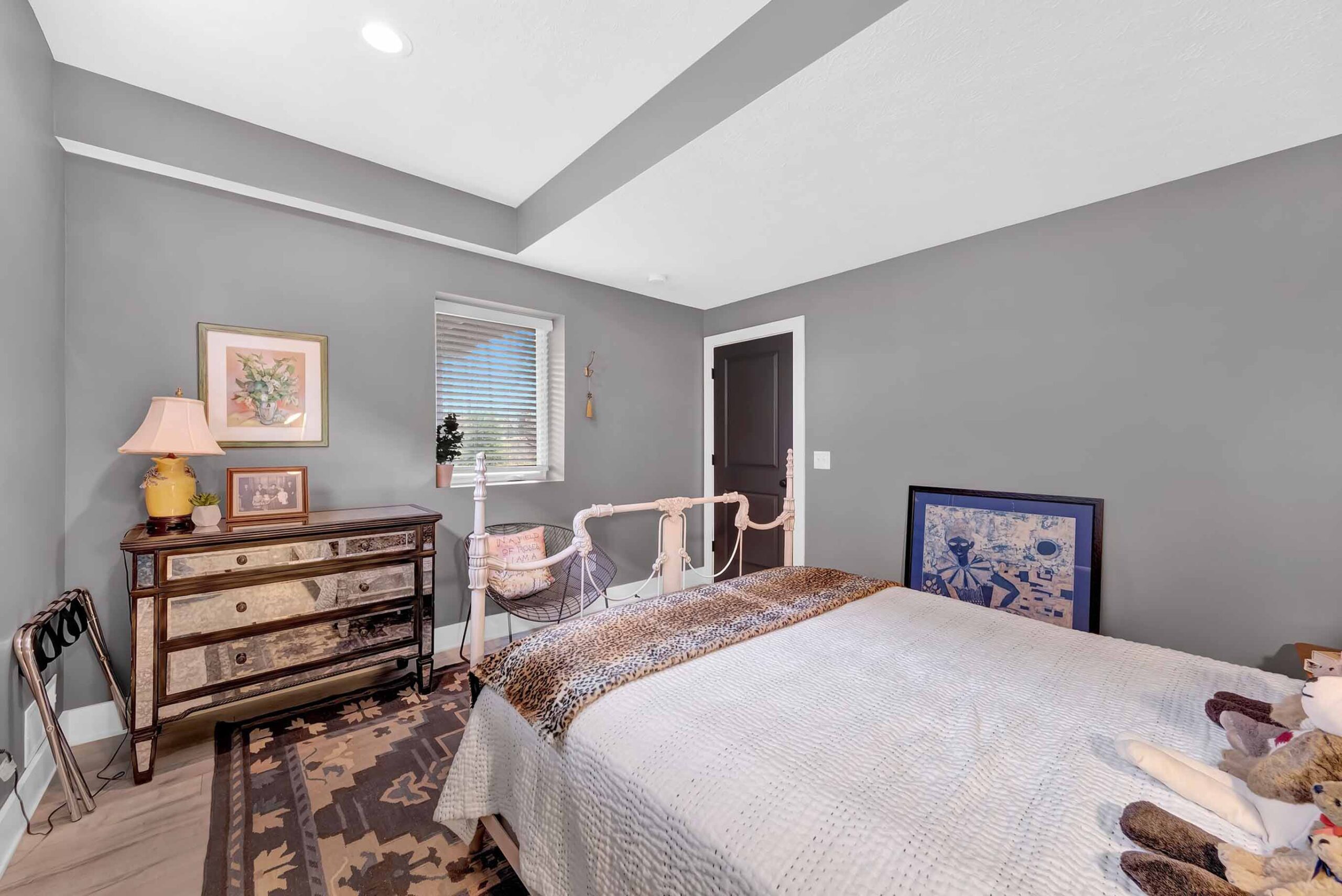 - The extensive custom finish in the lower-level will accommodate a wide variety of needs with open areas, a high-end full bath, a 3rd bedroom, heavy-duty storage shelving and a walk-out to the backyard.