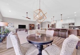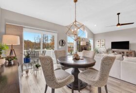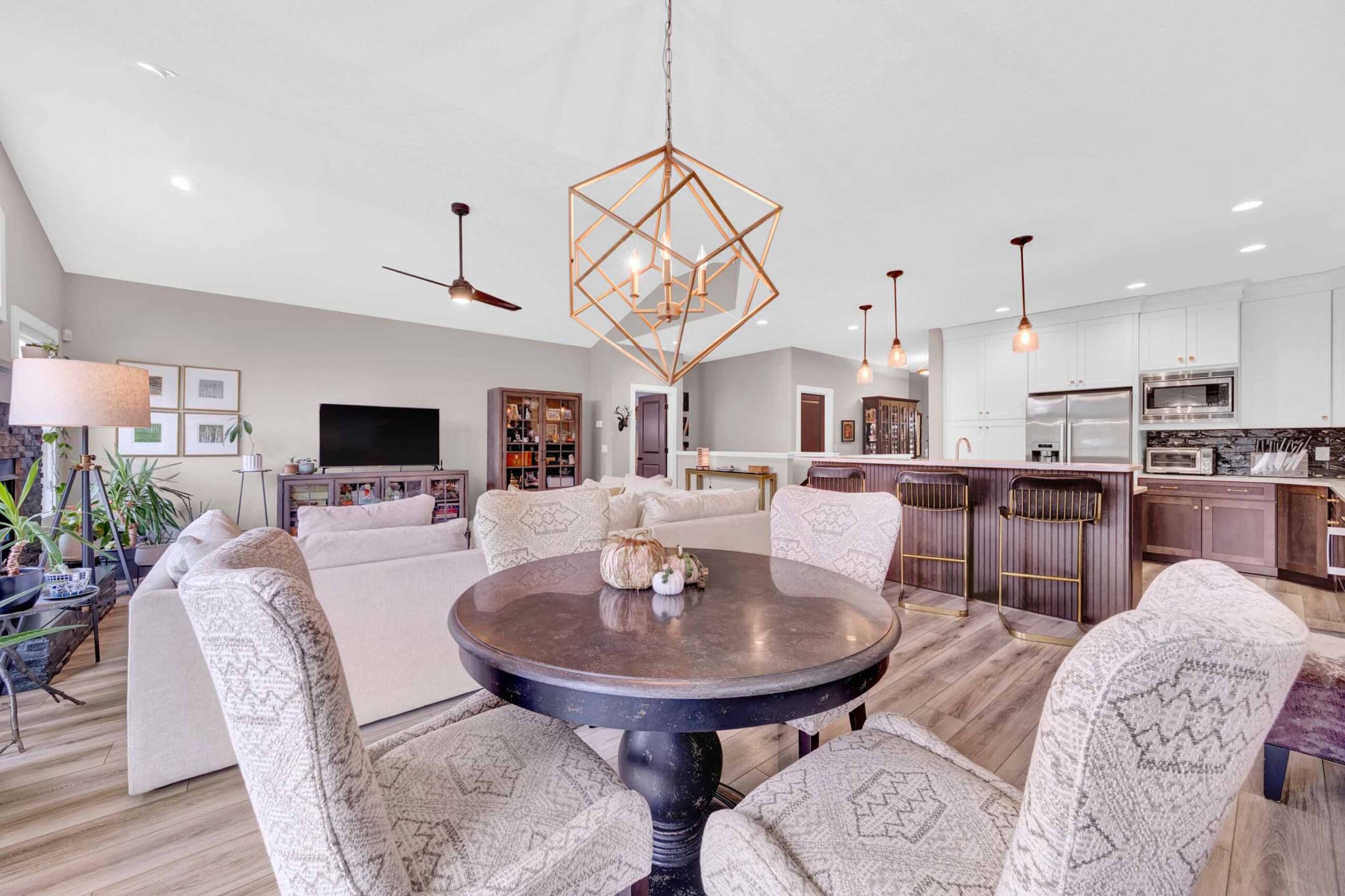 - The dining area provides access to the composite deck for entertaining and relaxation.