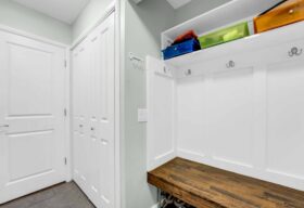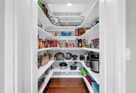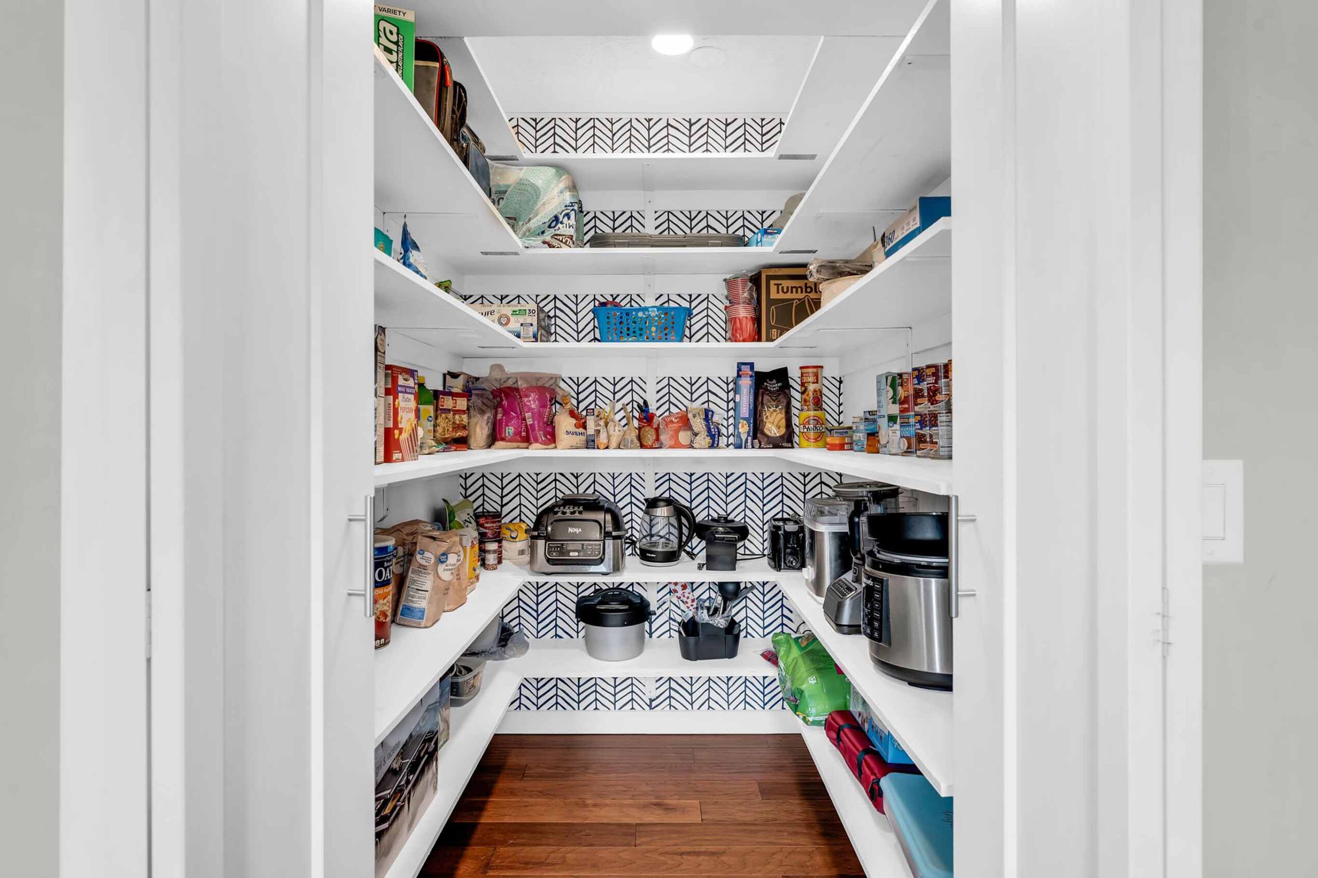 - Just off the main living space, a custom walk-in pantry provides exceptional storage, while the spacious laundry room includes additional storage, bench seating, and a newer washer and dryer.