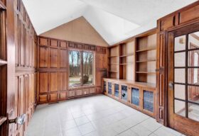 - Abundant rooms throughout the main level -- living room, dining room, hearth room, family room, home office, and reclaimed wood paneled library!