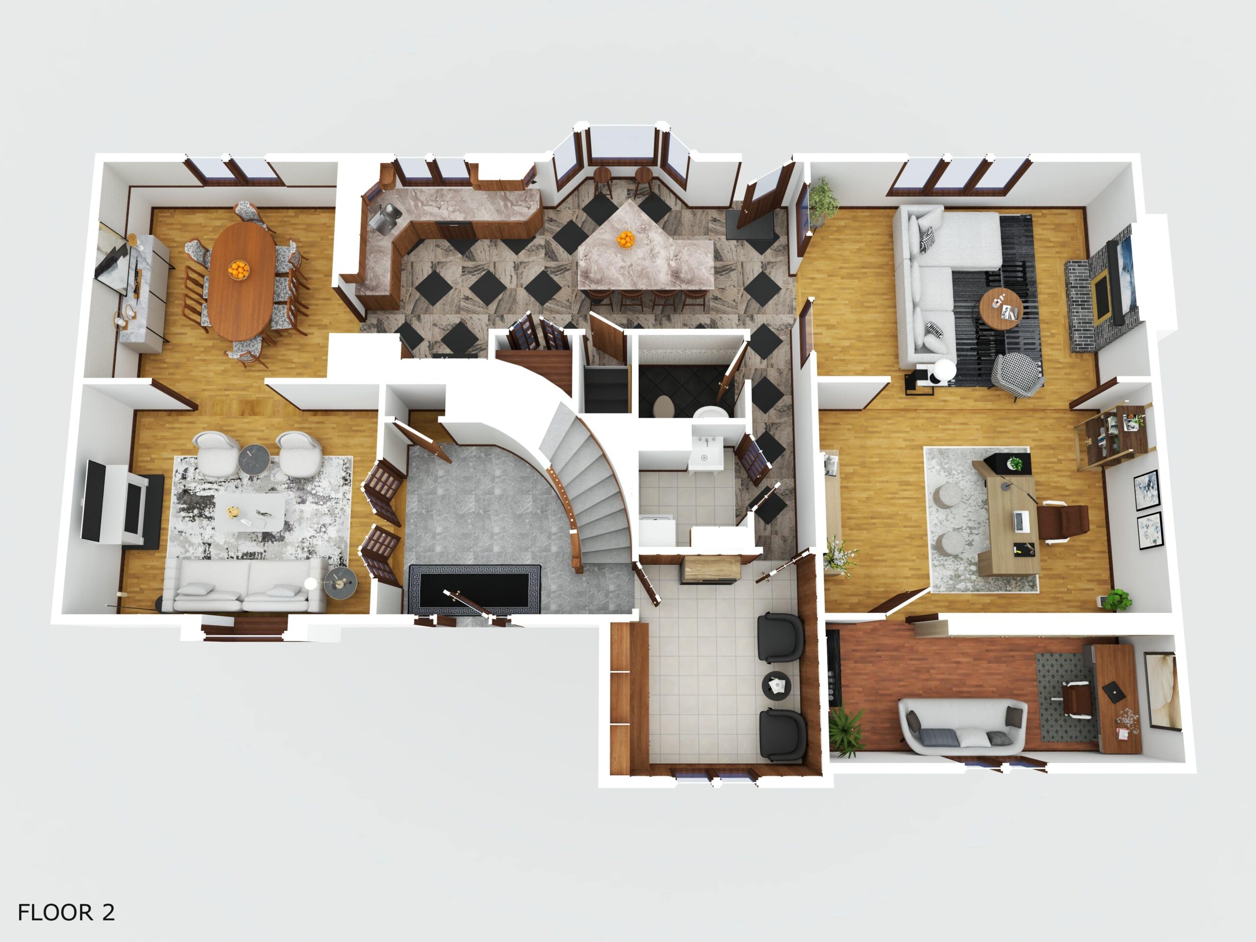 - Plenty of room for everyone and entertaining is a dream! The foyer welcomes you with beautiful marble flooring and a curved staircase.