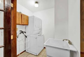 - A laundry room and half bath complete the space.