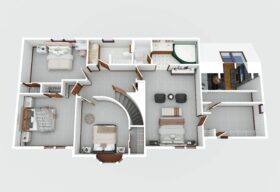- The upper-level features 4 bedrooms and 2 full baths.