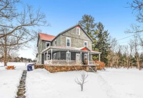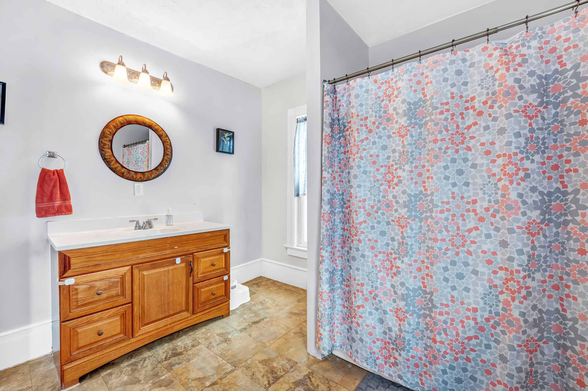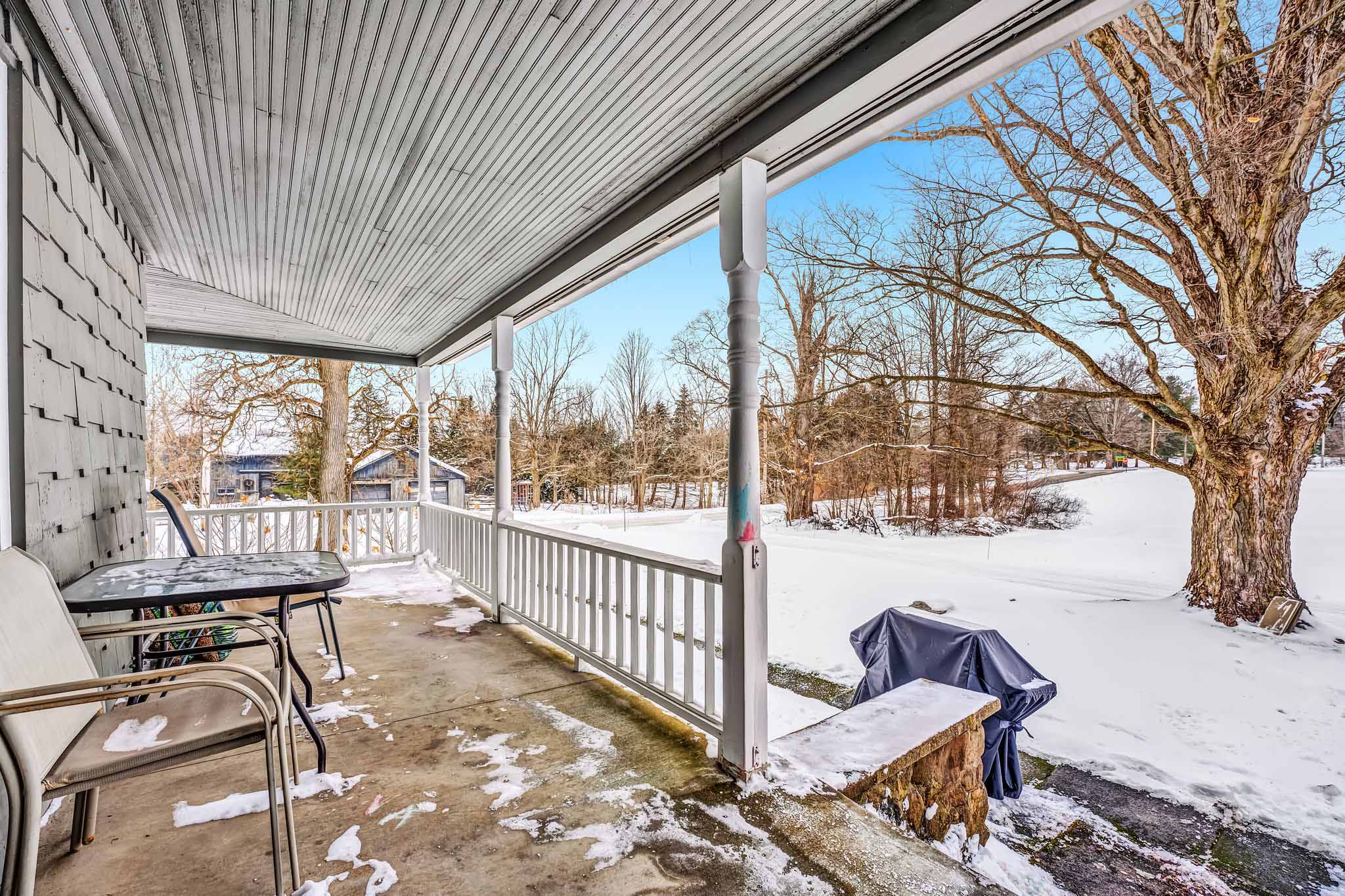 - This century-old colonial home features an inviting wraparound porch, ideal for enjoying sunsets.