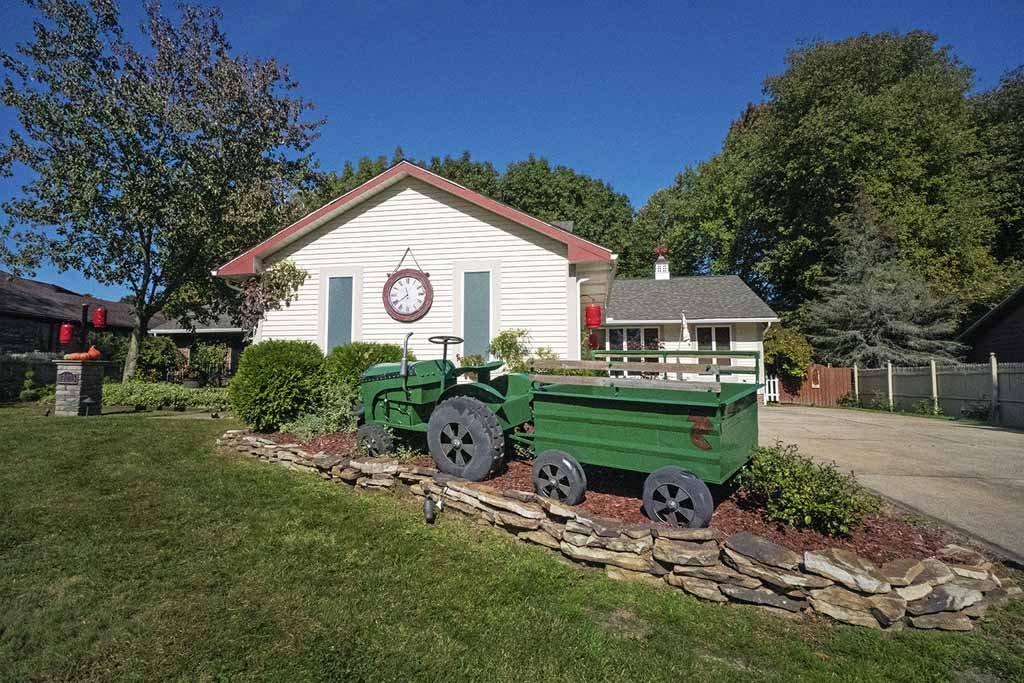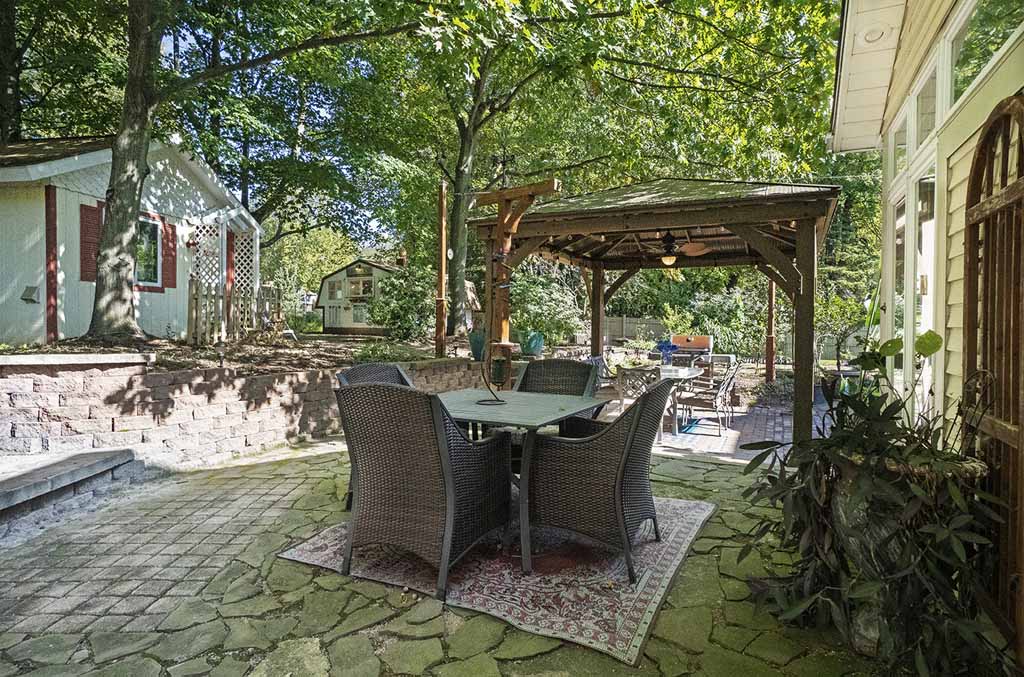 - Outdoor gazebo w/ high-end hardscapes, patio made with reclaimed bricks from Cleveland city streets.