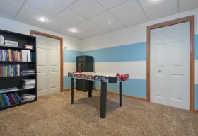 - The lower-level features a finished open rec room and an adjoining finished area for even more options as well as ample storage in the unfinished area.