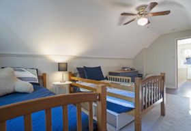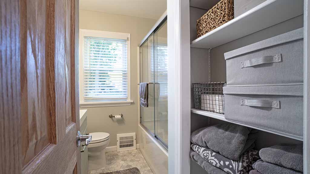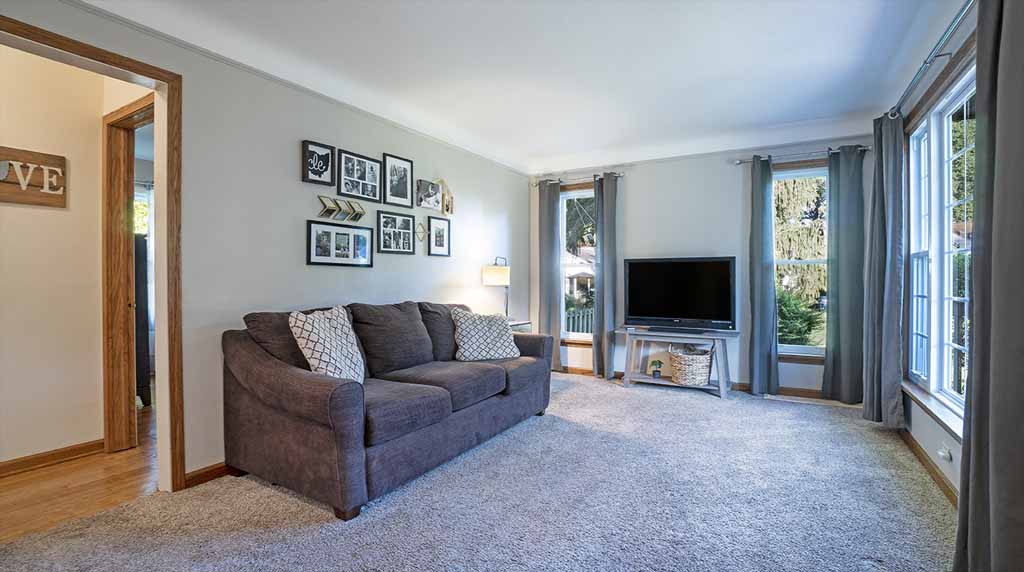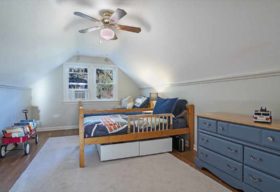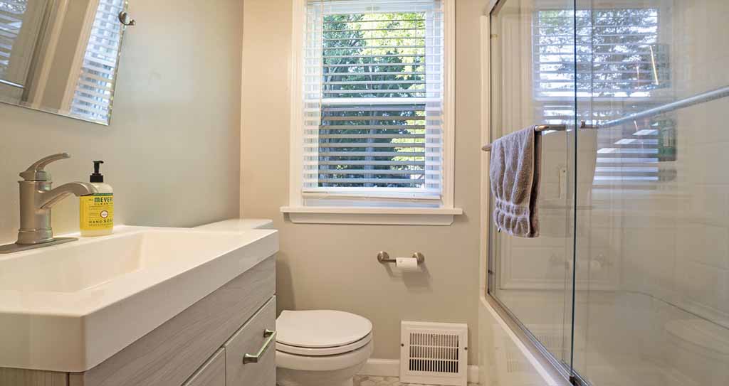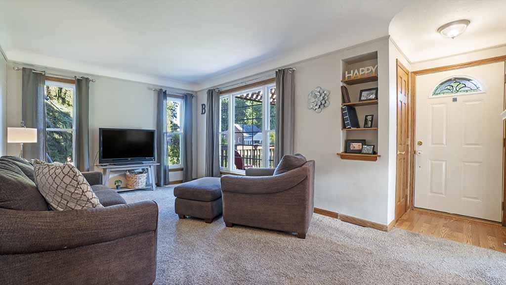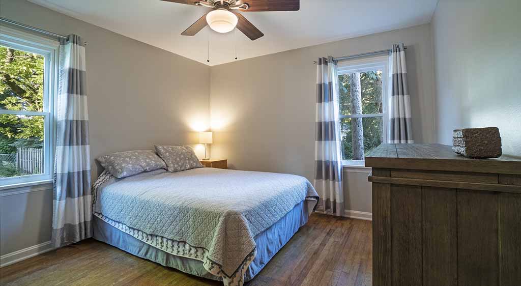 - Two bedrooms on the main level are separated by the main level, renovated full bath.