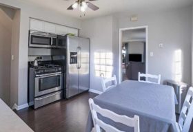 - Renovated, eat-in kitchen with gorgeous quartz countertops, all stainless-steel appliances and high-end luxury vinyl plank flooring.