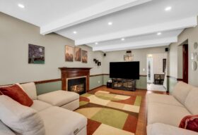 - The basement adds a finished rec space & laundry area w/washer & dryer.