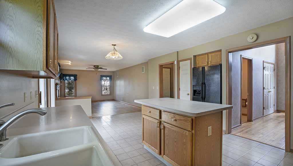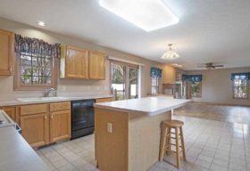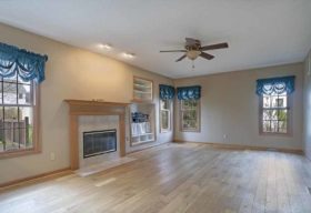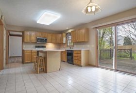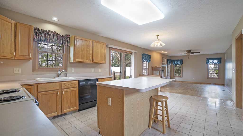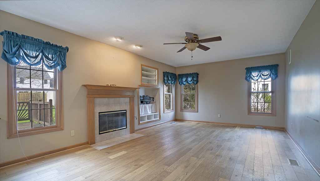 - Spacious eat-in kitchen with breakfast bar island and additional table seating space with slider to rear deck (to be professionally refinished starting 5/15). Large family room with newer engineered hardwood flooring, convenient gas fireplace and built-in space for TV and audio equipment.