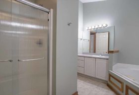 - Head upstairs to a generous sized master bedroom with a vaulted ceiling, huge, walk-in closet, master bath with double sinks, separate soaking tub and shower.