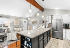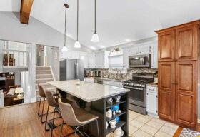 - Enter the foyer and prepare to be wowed by this open-concept, cozy, split-level style home featuring a rarely offered design — main level living with 5-bedrooms and 3 full baths on 4 floors, all tastefully remodeled with timeless materials.