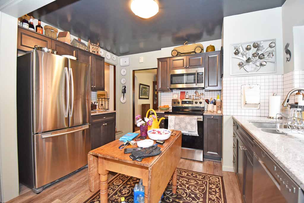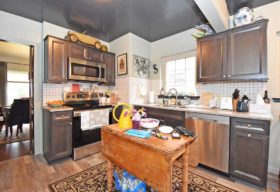 - Formal din rm, half bath & newly remodeled eat-in kit w/dovetailed, soft-close cabinets, granite, tiled backsplash.