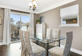 - Dining room is open to the kitchen with space for seating at the kitchen counter as well.
