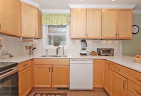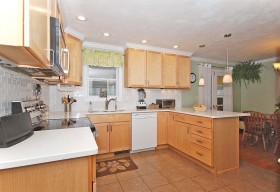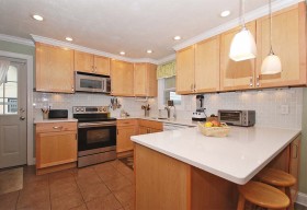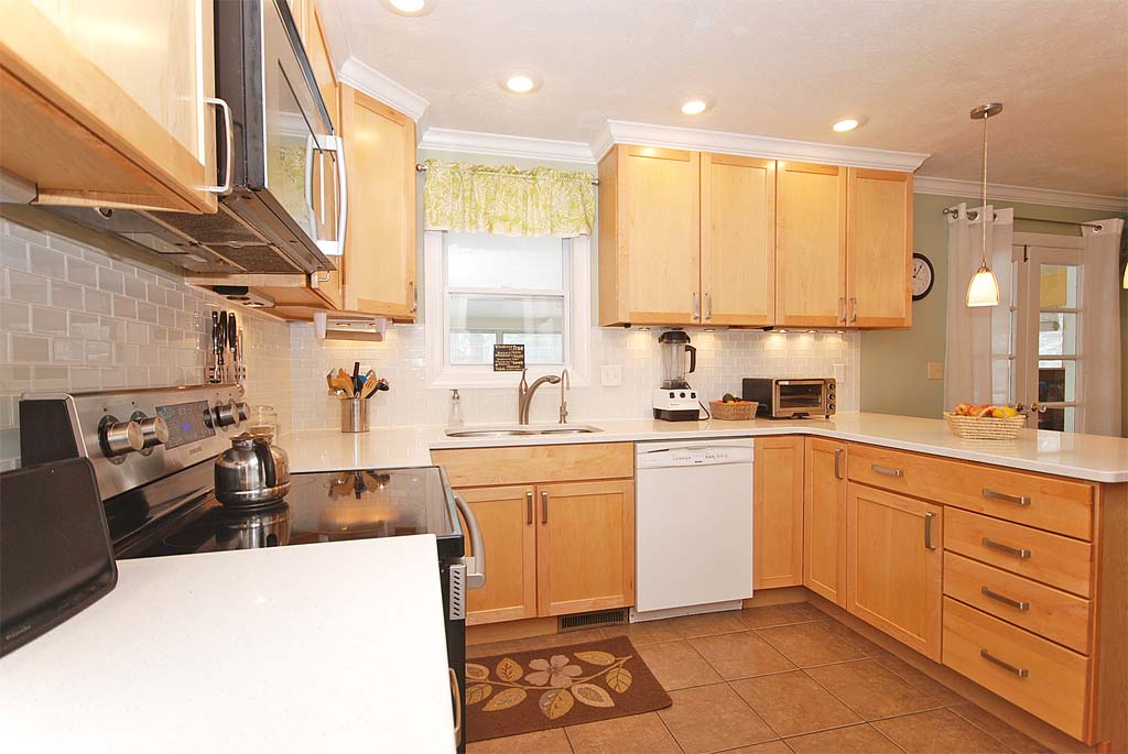 - High-end kitchen renovation with Silestone tops, maple cabs, ceramic flooring & custom lighting