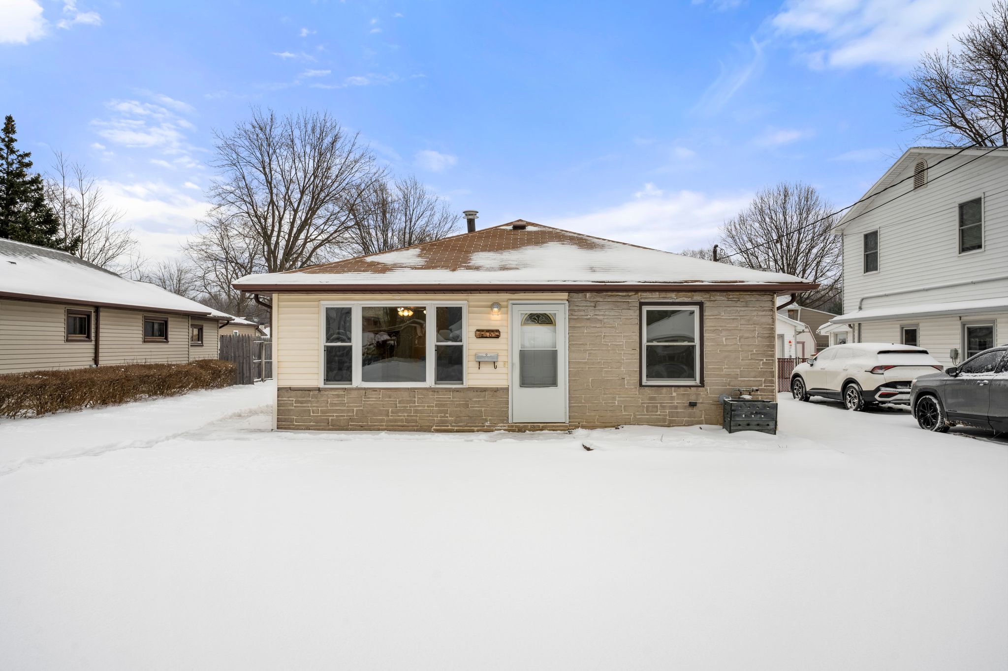- The front façade has stone and vinyl siding and an oversized picture window and two adjoining windows allow for an abundance of natural lighting and breezes from nearby Lake Erie.