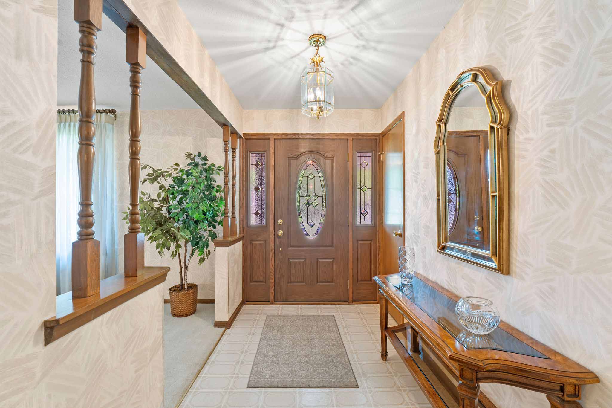 - Step inside a spacious foyer with an open concept living room and a dining room ready for large holiday gatherings.