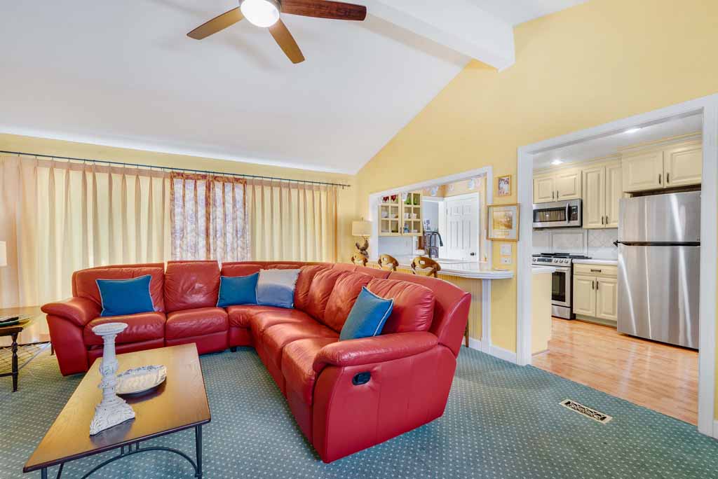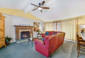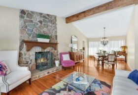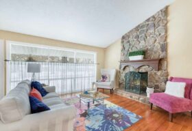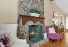 - Do you love 11’ vaulted ceilings with a wood-burning fireplace with floor-to-ceiling stone surround and a huge picture window for loads of natural light and gleaming hardwood floors? Look no further.