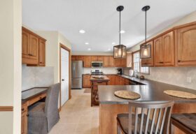 - The cozy family room includes a second handsome gas fireplace & unique mini kitchenette.