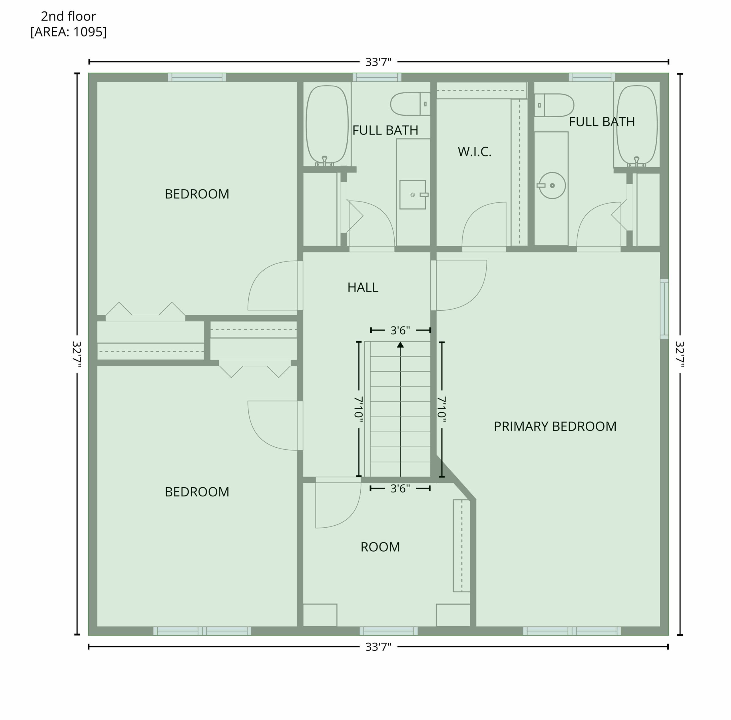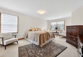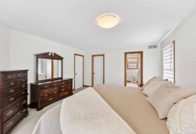 - Upstairs is the open, airy primary bedroom with ensuite.