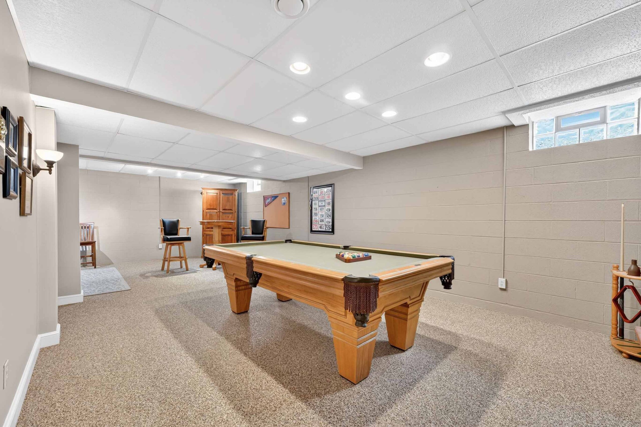 - The 12-course lower level offers a finished, spacious living/rec area, half bath & storage area all w/Miracle Stone flooring.