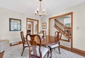 - The foyer welcomes you with a bright transom window w/two sidelights & leads to the living room, formal dining room & kitchen with large eat in area.