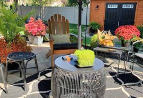 - There is access to the back patio surrounded by lush landscaping perfect for entertaining and relaxing.