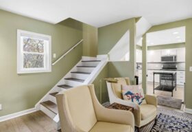 - The main level open floor plan invites natural light in and features a seamless flow of living spaces.