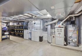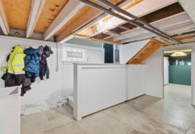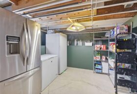 - The large, immaculate, unfinished basement offers a laundry area, a semi-finished room & space for lots of storage.