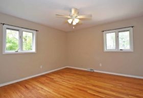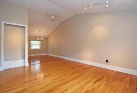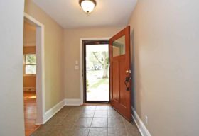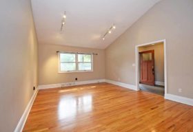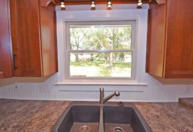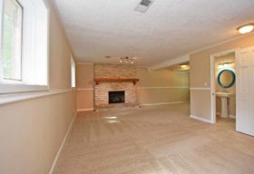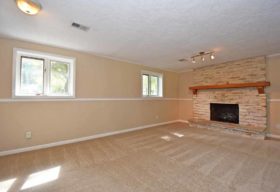 - Open, level rear yard is very usable, has a firepit and adjoins a quiet neighborhood with sidewalks.