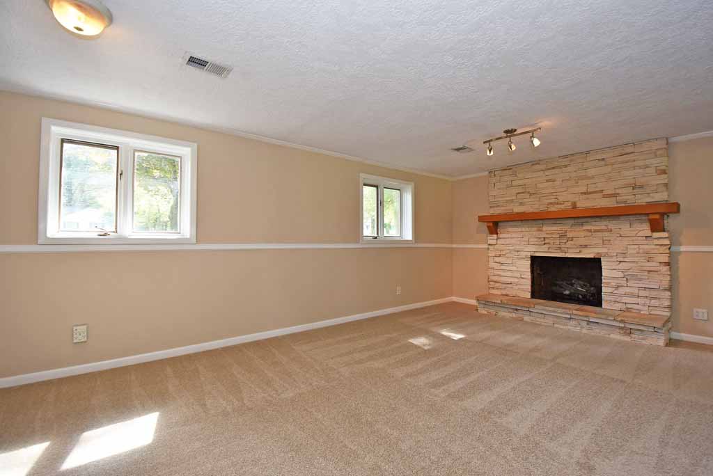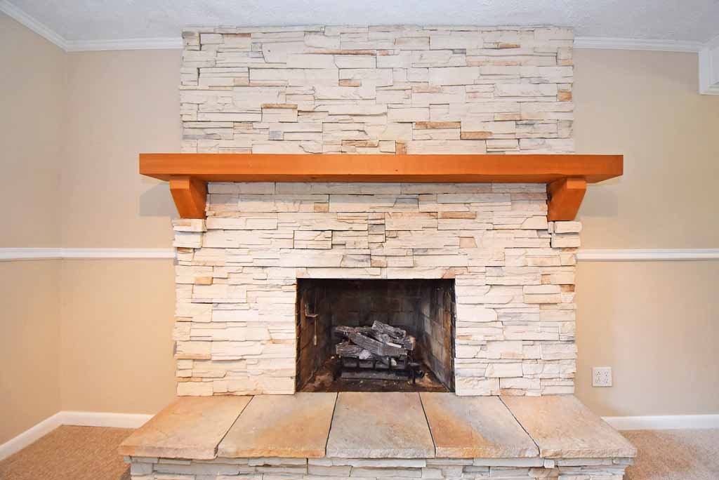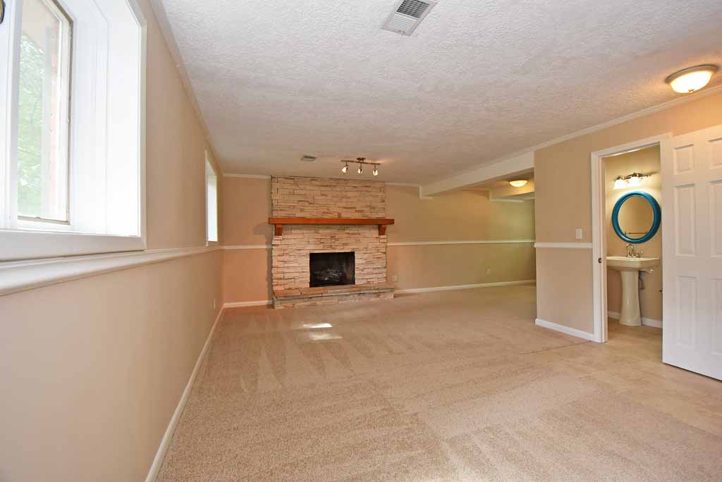 - Downstairs is an L-Shaped recreation room with a gas log fireplace with a stone surround and walkout to a stamped concrete patio.