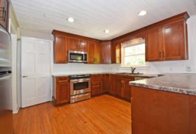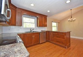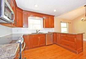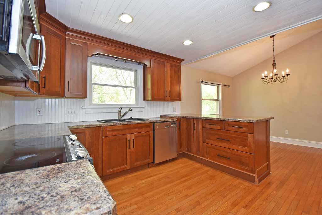 - Quality kitchen renovation with cherry cabinets with dovetailed, soft-close drawers with stainless appliances and open to the the dining room.
