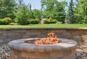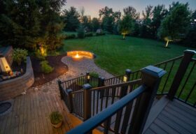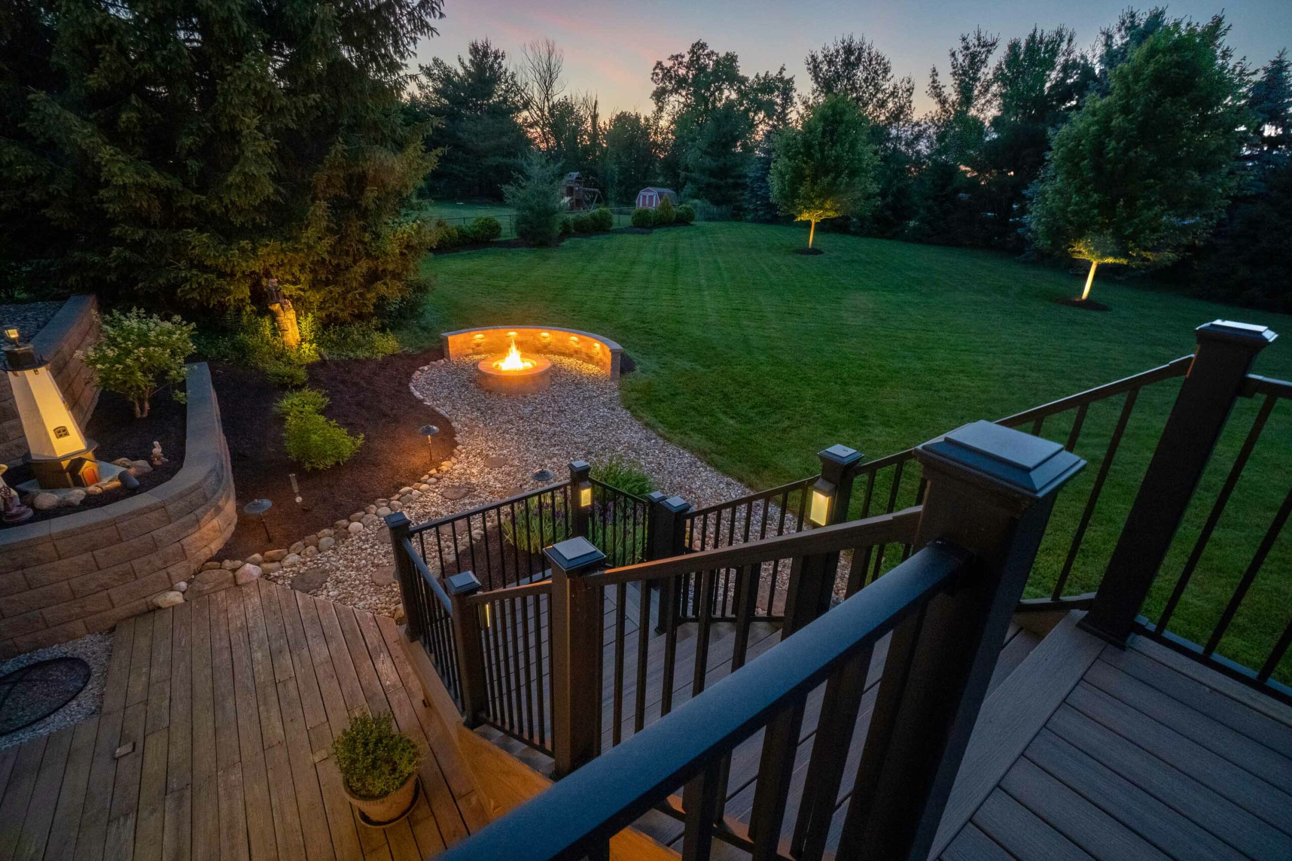 • The large rear yard exudes entertainment possibilities w/a lower-level walk-out to a ground-level deck & upper-level Trex deck accessible from the family room all accentuated by a gorgeous gas fire pit w/glass rocks, plentiful seating, accent lighting & decorative retaining walls.