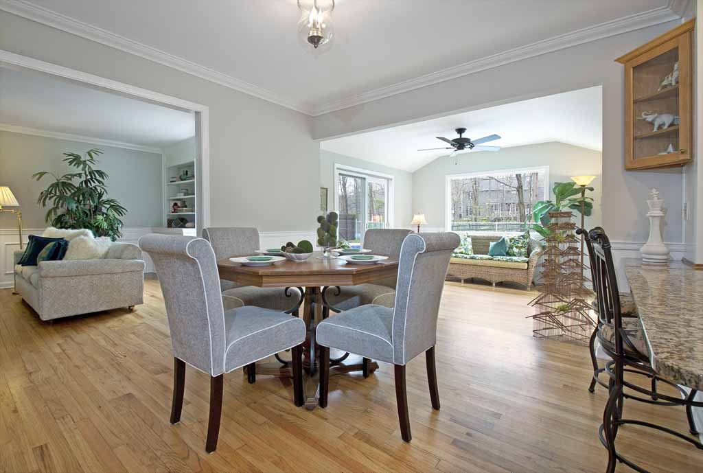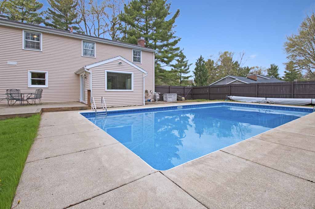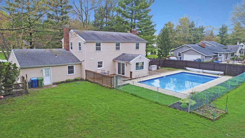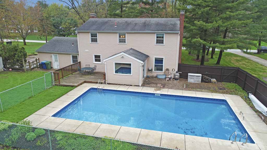 - Kitchen is completely open to the adjacent eat-in area which leads into a cheery sunroom overlooking the inground swimming pool (completely fenced) & fully-fenced backyard for complete privacy & security.