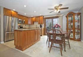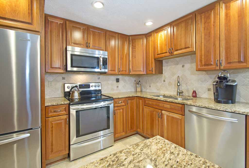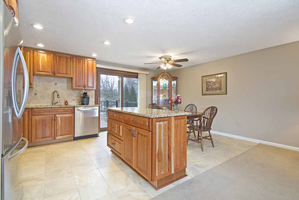 - High-end kitchen renovation (2014) with granite, cherry cabs w/dovetailed drawers, stainless appliances (range and frig are KitchenAid), custom ceramic tile backsplash w/custom inlays, ceramic flooring, island & recessed lights