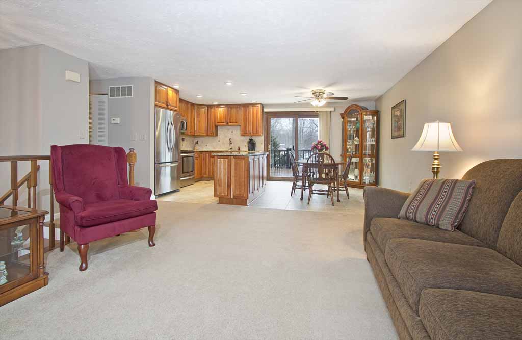 - Open-concept main living area where the kitchen, dining room & living room are all open to each other