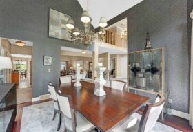 • Refreshed landscaping with accent lighting, a handsome brick façade with double entry doors, and striking 2-story Palladian windows all welcome you to step inside.