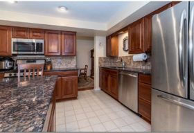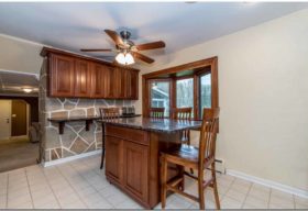 - Remodeled kitchen with loads of cherry cabinets, granite counters, tiled backsplash, eat-in space with the kitchen island and stainless appliances.