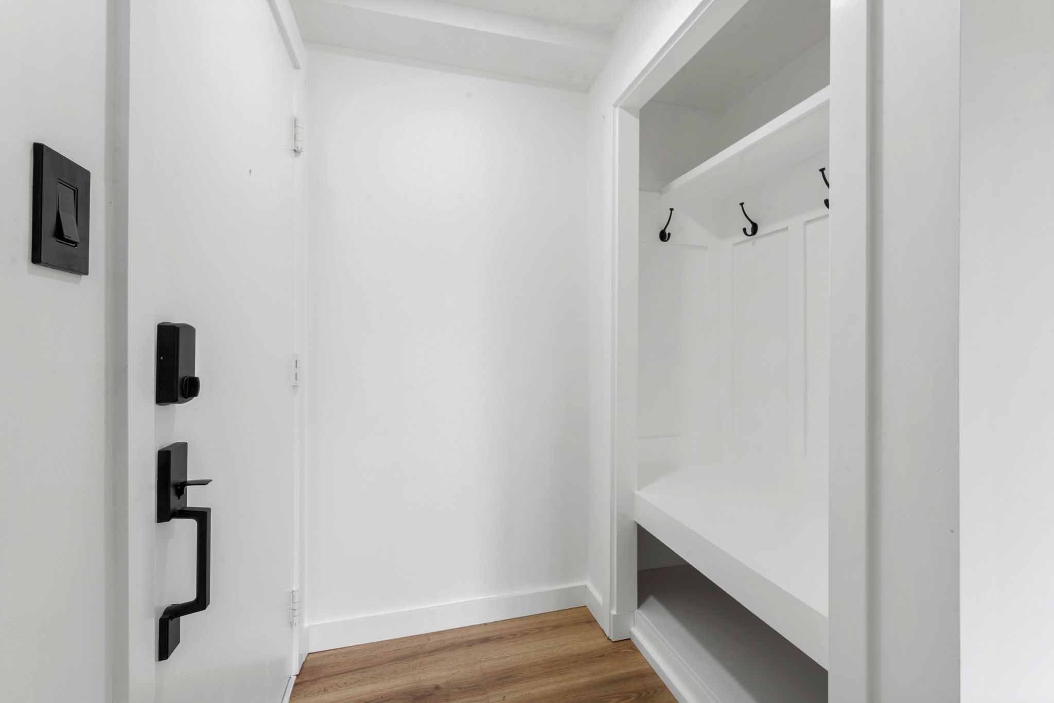 - Enter the foyer and notice a built in bench, recessed panels, hooks and storage galore.