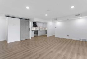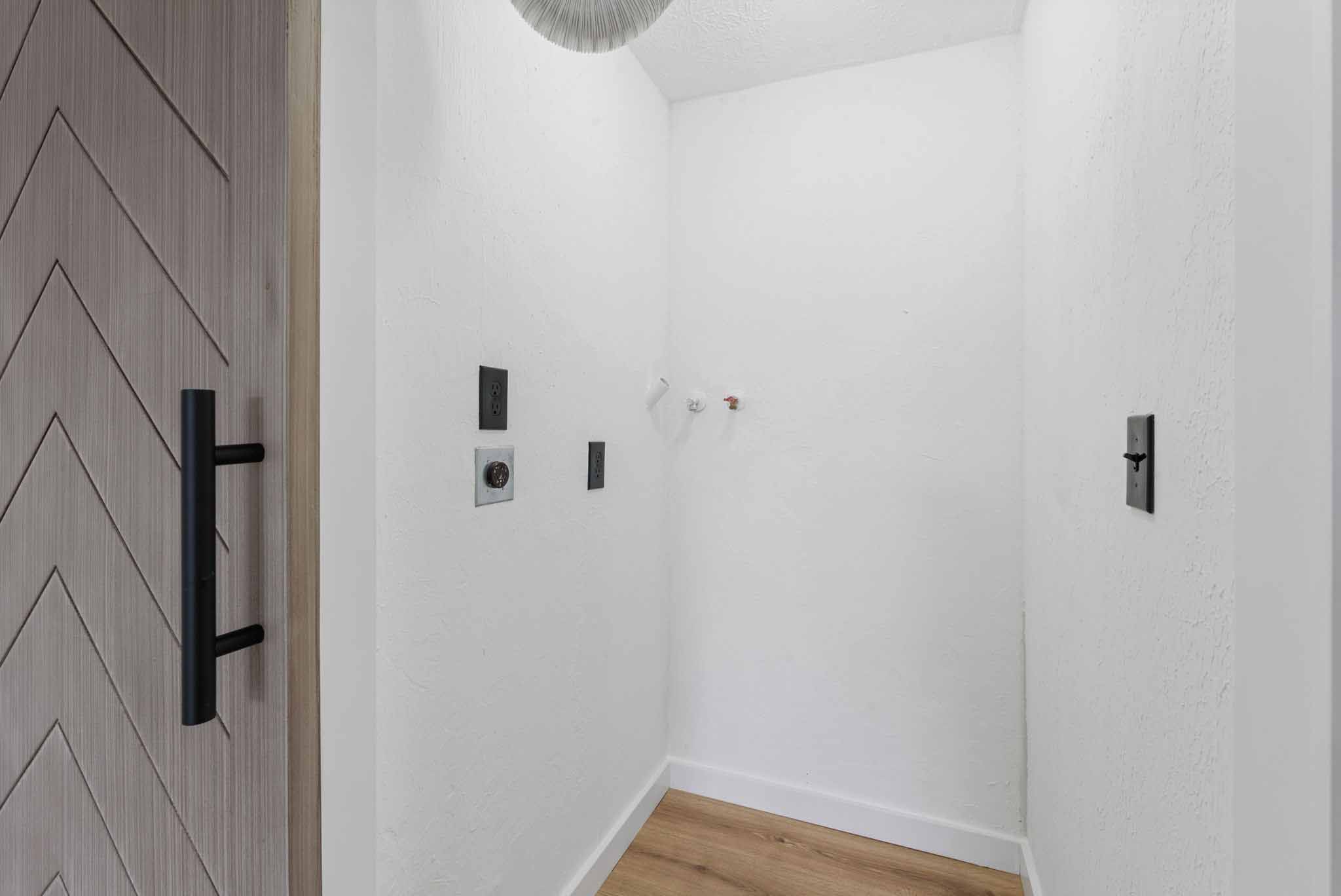 - Near the kitchen is a separate laundry room w/soft-close barn door.