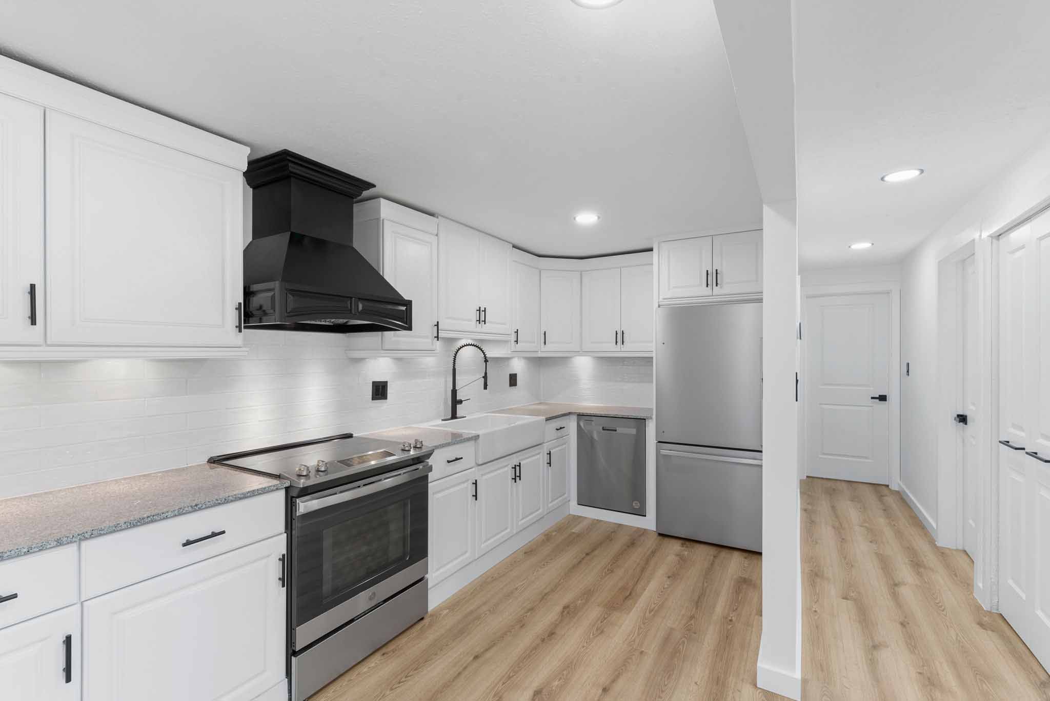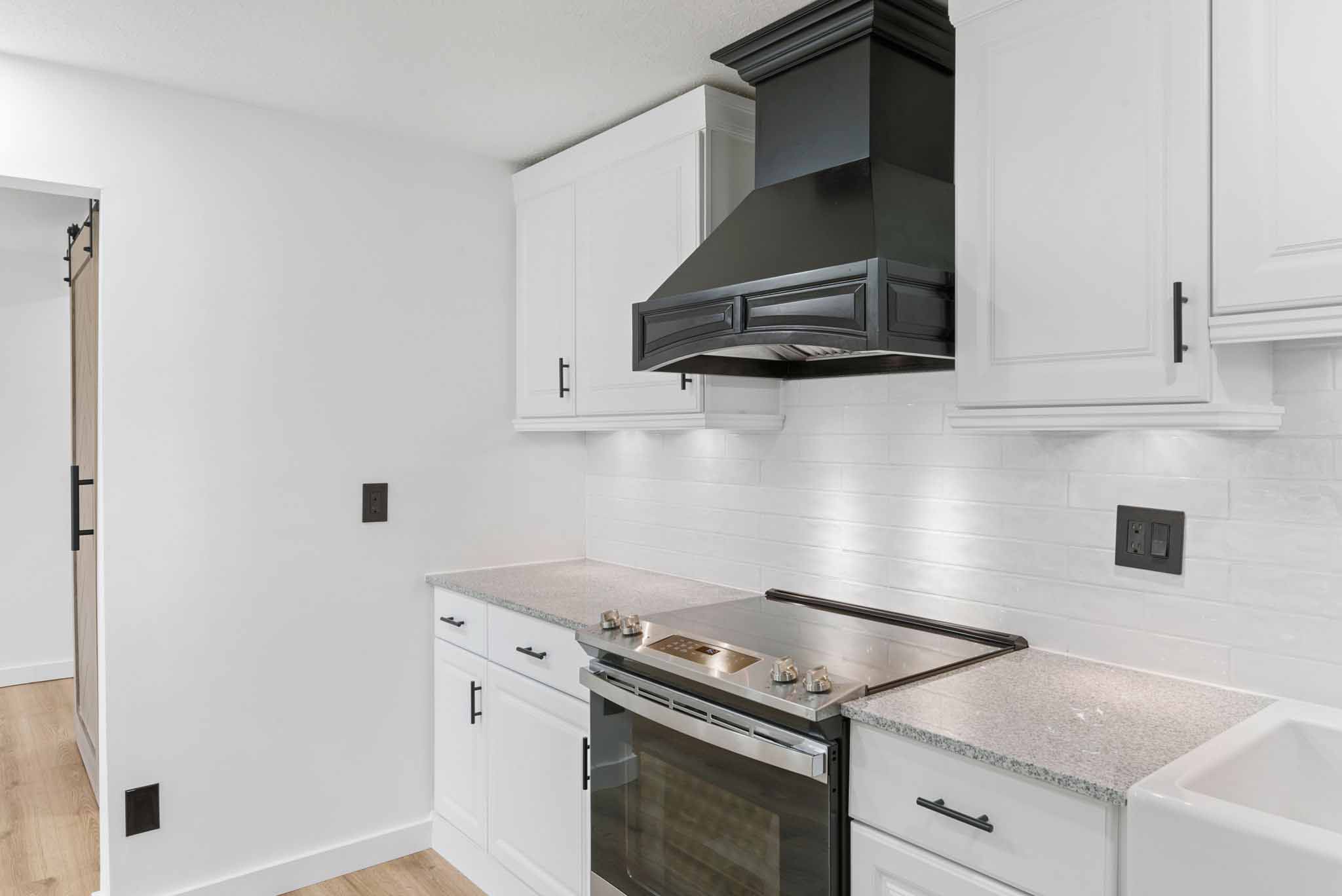 - Kitchen was opened up to let natural light in w/quality cabinetry, subway tile backsplash, under cab lighting, granite tops, farm sink, new SS appliances w/custom exhaust hood.