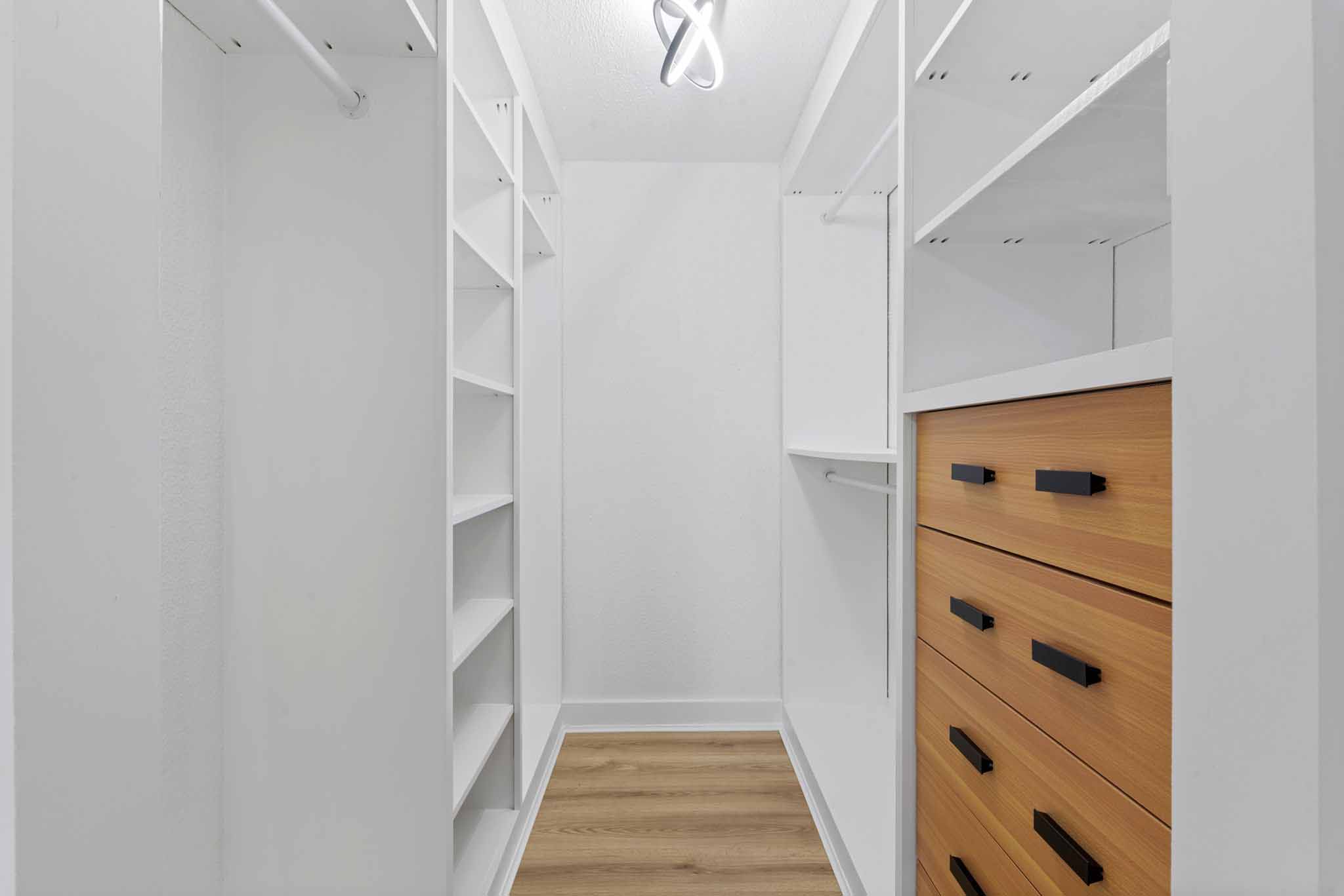 - Both bedrooms have custom-designed closets for maximum use of space & the owner’s suite has it’s own designer walk-in closet.