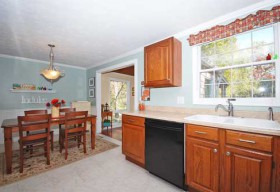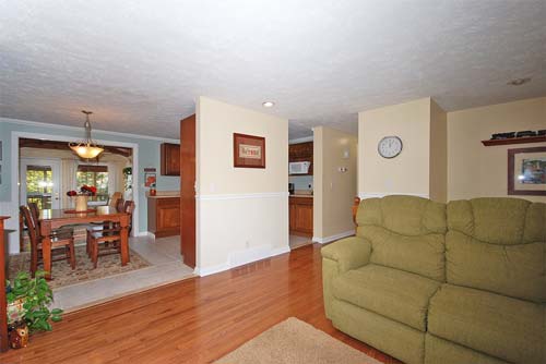 - Open dining room with beautiful ceramic flooring and views into sun room and backyard