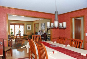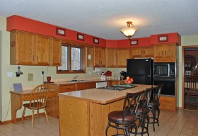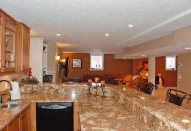 - Fully finished basement with surround sound, bar area with granite counter and custom cabinetry, built-ins, craft and game areas and more.