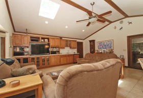 - In-law suite in basement with kitchen, 1.5 baths, living area and two bedrooms, separate entrance