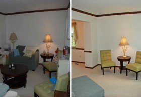 - Home Staging. Brought new furniture and accessories in. Re-purposed existing furniture and accessories.